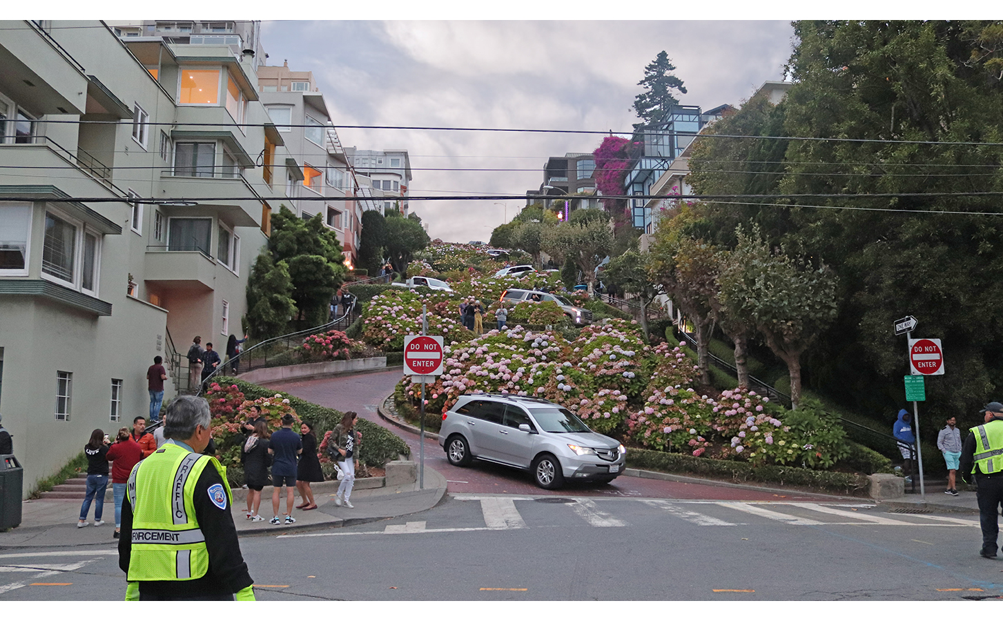 Après avoir déposé (enfin !) les vélos, nous nous sommes arrêtés sur le chemin du retour sur la route la plus sinueuse du monde : Lombard Street.