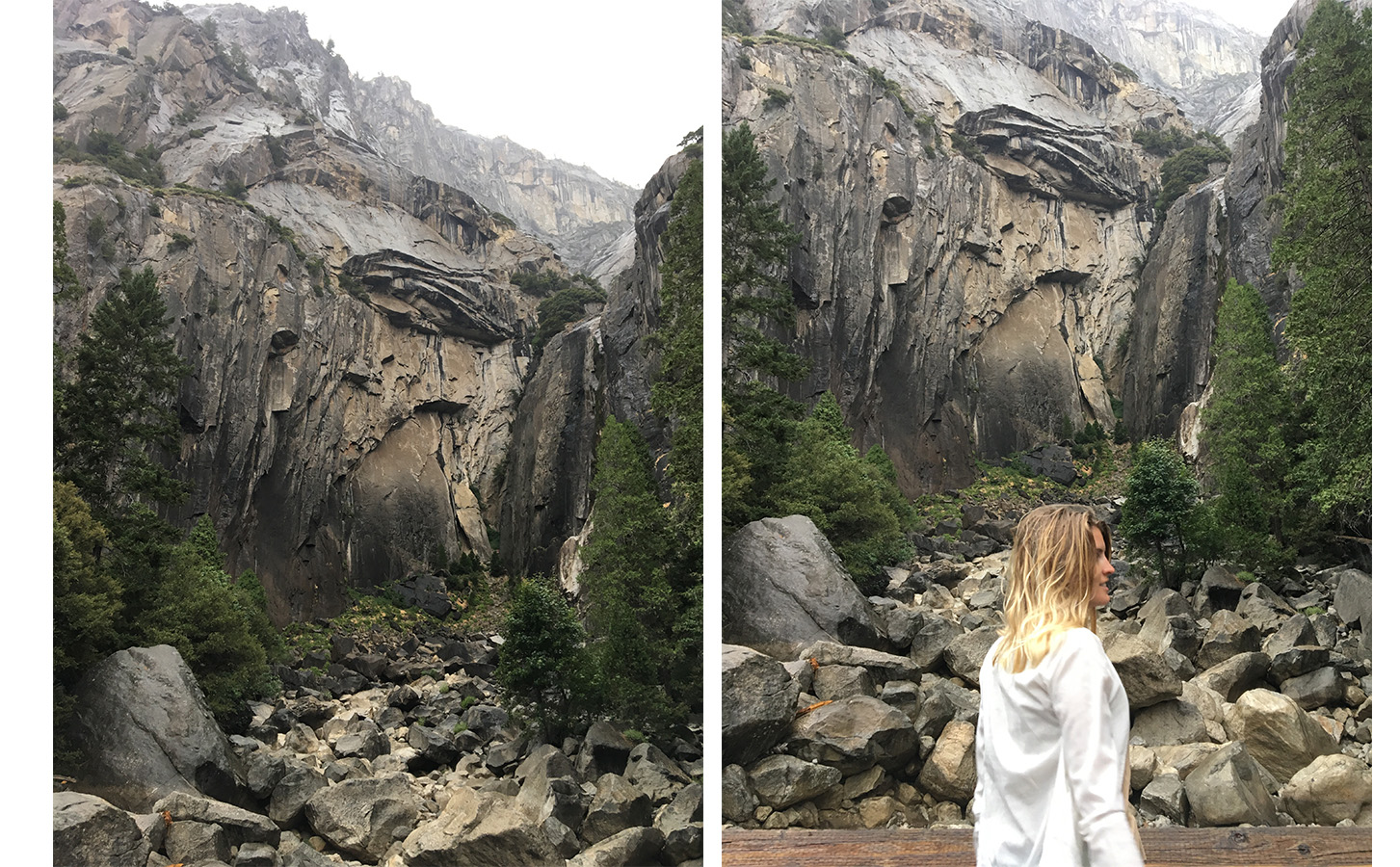 Les plus aventureux montaient sur les gros rochers pour se rapprocher au plus près de la fine cascade de septembre et avoir sans doute un très jolie point de vue sur Yosemite.